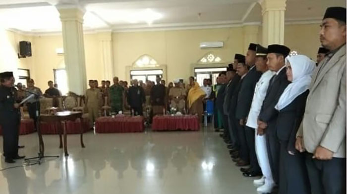 SEURAMOE BLANGPIDIE - Sebanyak 57 orang pejabat dalam lingkungan Pemerintah Kabupaten Aceh Barat Daya (Pemkab Abdya), Selasa (18/2/2020) sekitar pukul 09.00 WIB, dilantik dan diambil sumpah berlangsung di aula Mesjid Kantor Bupati setempat.