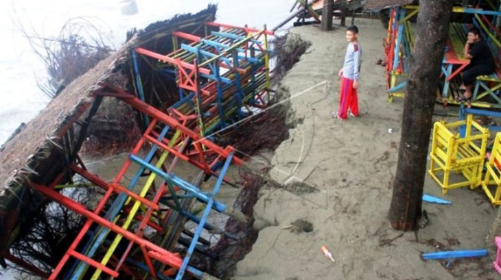 Sebelumnya, pada sabtu (9/5) lalu abrasi merusak sekitar 20 unit pondok kafe di desa setempat.