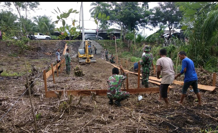 Sejumlah Bintara Binaan Desa (Babinsa) Koramil 06 Darul Makmur bersama aparat desa setempat serta dibantu para Toda dan Toga, mulai mengerjakan proses pembangunan rumah tersebut.