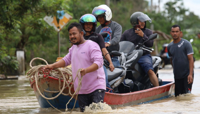 Berdasarkan pantauan yang dilakukan, ketinggian air mencapai 50 cm dan membuat para masyarakat harus menggunakan jasa rakit dadakan agar dapat melintasi jalan tersebut.