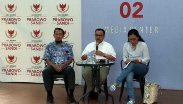 Prabowo-Sandi, Sudirman Said, dalam jumpa pers Jumat (26/04/2019) di Media