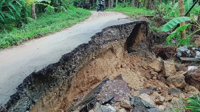 Amblasnya jalan tersebut akibat dihantam banjir pada, Rabu (23/9/2020) kemarin.