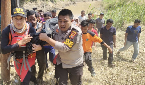 Tim Basarnas bersama personil Polsek Tanah Luas dibantu warga, jelas Iptu Mahmud kemudian mengevakuasi jasad korban ke darat.