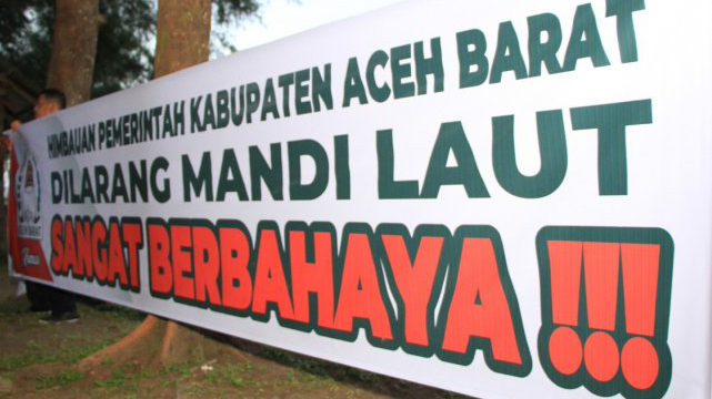 BPBD Aceh Barat Larang Wisatawan dan Masyarakat Mandi Laut