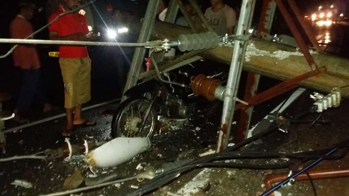 SEURAMOE BLANGPIDIE - Tiang listrik yang berada dipinggir jalan Nasional tepatnya dikawasan perbatasan Gampong Cot Bak U dan Kaye Aceh Kecamatan Lembah Sabil, Kabupaten Abdya Kamis, (18/7/2019) malam dilaporkan tumbang dan menimpa seorang pengendara motor yang melintas.