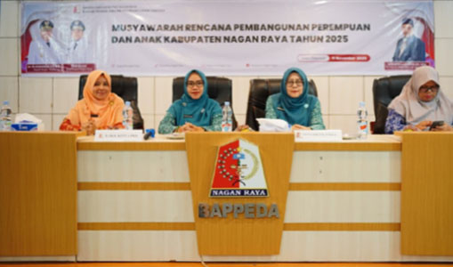 l Foto: IstSUKA MAKMUE - Ketua Tim Penggerak Pemberdayaan dan Kesejahteraan Keluarga (TP-PKK) Kabupaten Nagan Raya, Ny Cut Inda TR Keumangan, Selasa (11/11/2025) membuka Musyawarah Rencana Pembangunan Perempuan dan Anak (Musrena) Tahun 2025 di Aula Bappeda, Kompleks Perkantoran Suka Makmue.