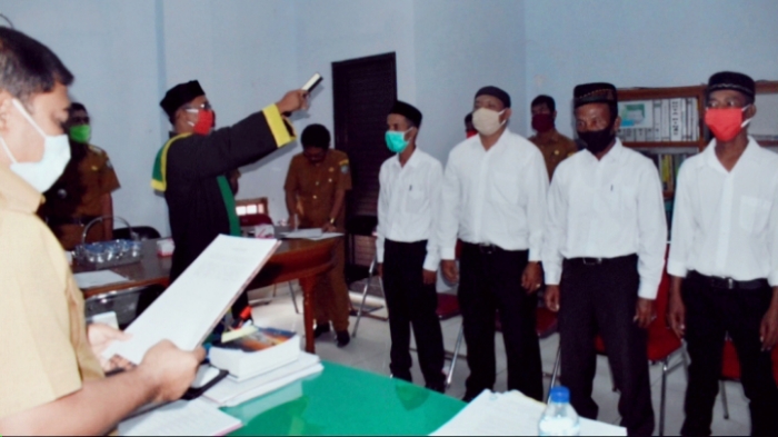 SUERAMOE BLANGPIDIE - Bupati Aceh Barat Daya (Abdya) diwakil Asisten I Pemerintahan Sekretariat Daerah melantik empat orang penjabat (Pj) Keuchik periode 2020-2021 Selasa (24/8/2020).