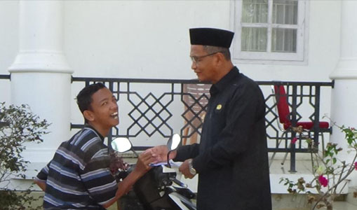 Kedatangan Andika dengan mengendarai becak motor langsung disambut dan direspon oleh Bupati dengan memberi modal usaha.