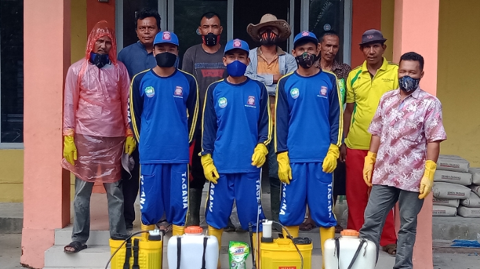 ”Hari ini masyarakat Tokoh II, bersama Anggota Tagana, melakukam penyemprotan di tempat keramaian, seperti tempat ibadah, tempat pengajian serta kios-kios dan Rumah warga," ujarnya.