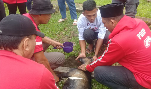 Penyembilihan hewan kurban itu dilaksanakan di belakang Kantor DPC PDI Perjuangan setempat selepas shalat zuhur.