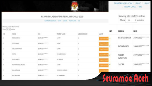 tersebut. Dari 174 mata pilih, NIK yang tercantum hampir semuanya
