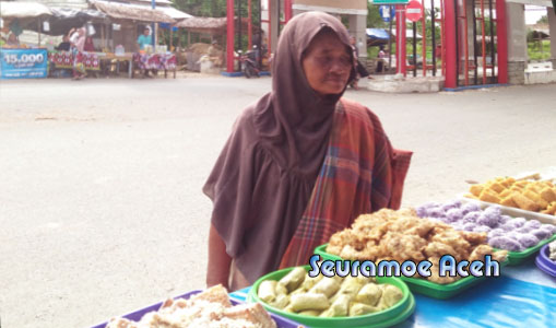 SEURAMOE SUKA MAKMUE – Penjual menu berbuka di pintu gerbang komplek perkatoran Suka Makmu, Nagan Raya diresahkan oleh ulah seorang perempuan.