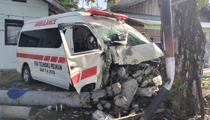 Diduga Mengantuk, Ambulance Milik RSUD Abdya Hantam Pohon di Aceh Jaya