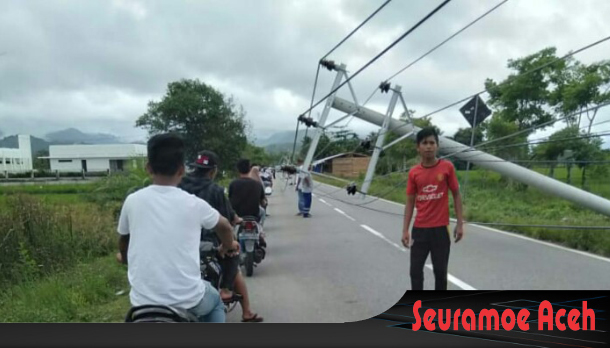 (Abdya), menggakibatkan, enam tiang listrik di Jalan Nasional Gampong Paya Laut
