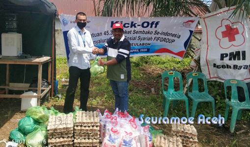 SEURAMOE/BASRI ADISEURAMOE MEULABOH – FIF Group Aceh Barat menyalurkan paket sembako gratis melalui Tim Penaggulangan COVID-19 PMI setempat, Selasa (13/04/20).