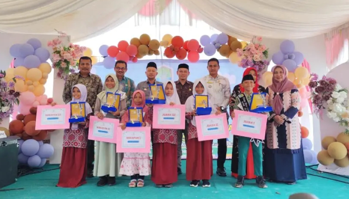 CALANG - Bupati Aceh Jaya, Safwandi menyampaikan apresiasi tinggi kepada para peserta Lomba Bertutur tingkat SD/MI se-Kabupaten Aceh Jaya dalam acara penutupan dan penyerahan hadiah yang berlangsung di Gampong Dayah Baro Calang, Kamis (15/5/2025)