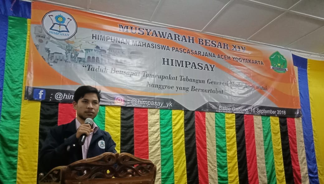 Dalam Mubes tersebut, Heri Maulizal, SH, terpilih secara aklamasi sebagai Ketua Himpunan Mahasiswa Pascasarjana Aceh Yogyakarta (Himpasay) periode 2018-2019.