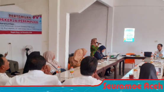 SEURAMOE SUKA MAKMUE – Wakil Ketua II DPRK Nagan Raya, Hj. Puji Hartini ST, MT menjadi narasumber dalam acara Pertemuan Pekerja Perempuan yang diadakan oleh pengurus Trade Union Care Center (TUCC) Aceh