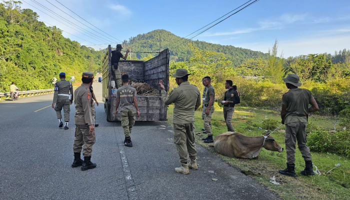 Jadi Penyebab Kecelakaan, Satpol PP Aceh Jaya Amankan Puluhan Hewan Ternak