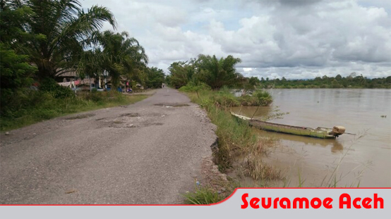 Pantauan Seuramoeaceh.com, Jalan yang berada dilintasan Desa Mon Dua dan Desa Lueng Keube Jagat sekarang sangat berbahaya untuk dilalui. Selain berlobang juga badab jalan mulai tergerus air sungai.