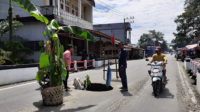 Jalan Lintas Provinsi Berlubang dan Ancam Keselamatan, Warga Tanam Pohon Pisang