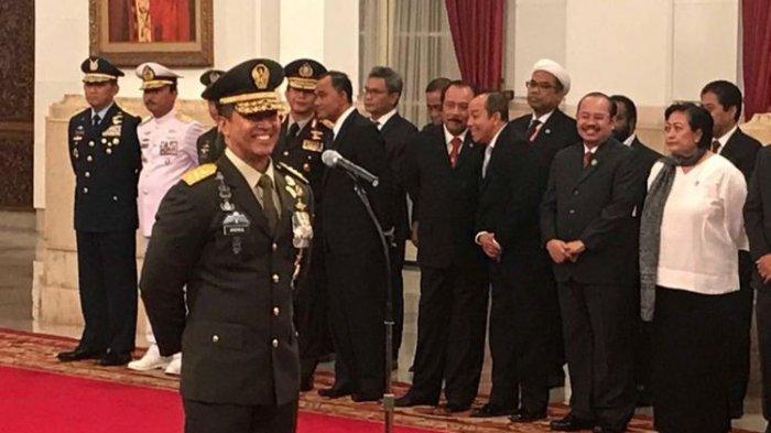 Pelantikan digelar di Istana Kepresidenan, Jakarta Pusat, Kamis (22/11). Pantauan merdeka.com upacara pelantikan diawali dengan pengambilan sumpah oleh Presiden Jokowi yang diikuti oleh Andika setelah sebelumnya Sekertaris Militer membacakan surat Keputusan Presiden Nomor 97/TNI Tahun 2018 tentang Pemberhentian dan Pengangkatan KSAD ditetapkan 22 November 2018.