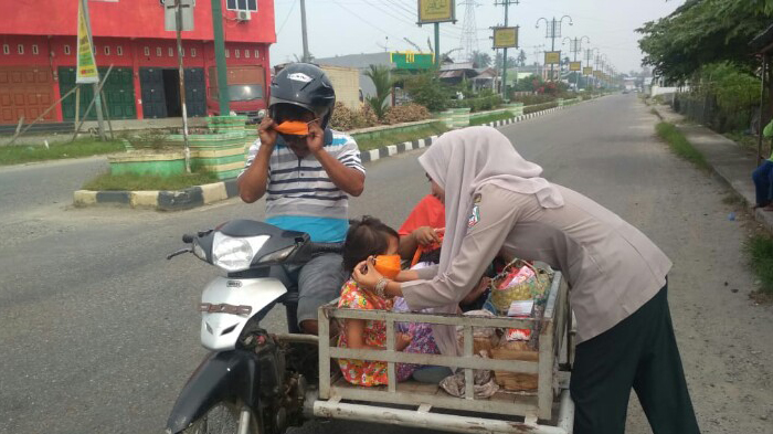 Ia menjelaskan, pembagian masker kepada masyarakat agar tidak terkena penyakit Ispa dan penyakit saluran pernapasan lainnya. Namun Dona tidak bisa memastikan apakah asap itu sudah berbahaya bagi kesehatan.
