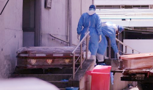 Perkiraan itu karena pihak berwenang mengumpulkan lebih dari 100 mayat sehari di rumah-rumah kerabat pasien corona.