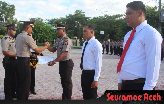 Pemberian penghargaan kepada Kapolsek Kuala Iptu Zaflaini SH dan dua anggotanya Aiptu Muhammad Yunus dan Bripka Dria Kurnian (Intelkam) dilakukan Kapolres usai upacara Hari Kesadaran Nasional di halaman Mapolres setempat.