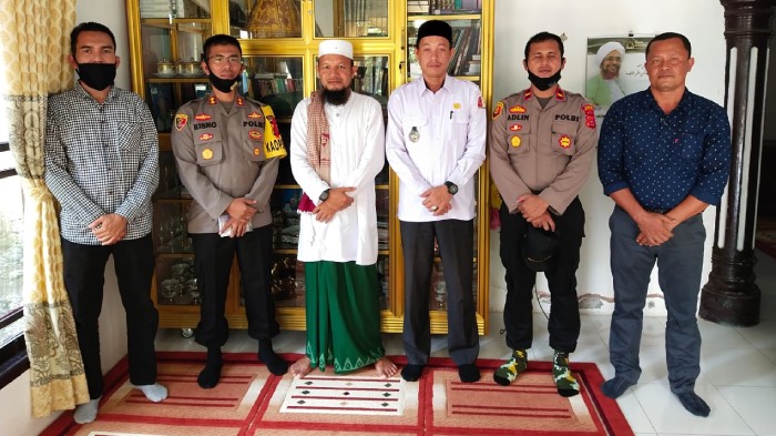 Kedatang AKBP Risno disambut langsung oleh pimpinan pondok pesantren NUDI Abiya Husaini Ishak dan pengurus Tastafi.