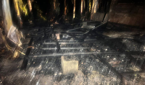 SEURAMOEAceh.com l Rumah milik Iswanda di Desa Lamie Kecamatan Darul Makmur Kabupaten Nagan Raya terbakar.