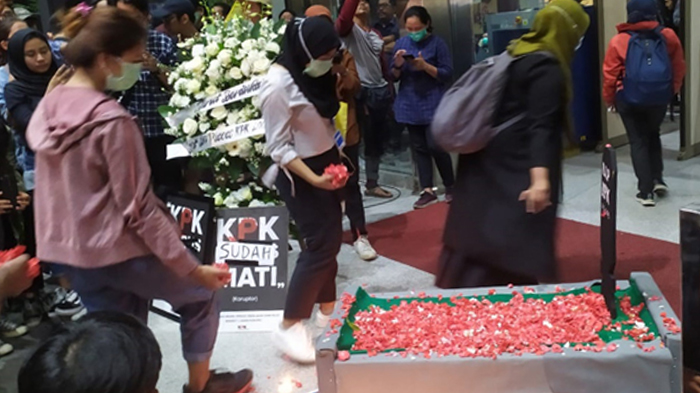 'Pemakaman KPK' di lobby Gedung KPK, Kuningan, Jakarta Selatan, Selasa malam