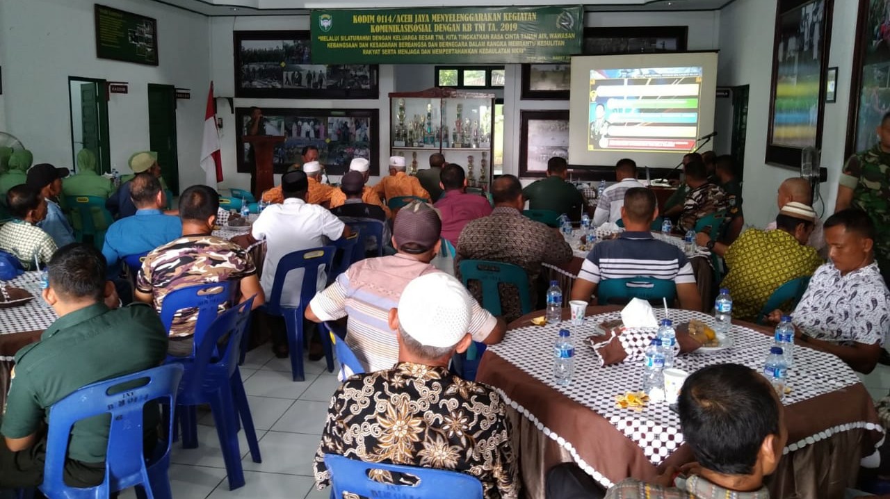 SEURAMOE CALANG – Kodim 0114/Aceh Jaya menyelenggarakan kegiatan Komunikasi Sosisal (Komsos) yaitu bersilaturahami dengan Keluarga Besar TNI (KBT) di wilayah Kabupaten Aceh Jaya.