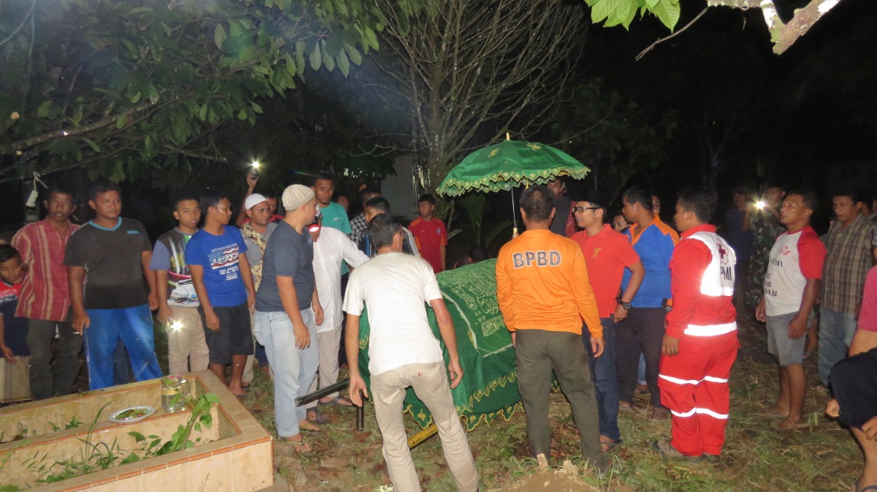 Setelah dishalatkan di masjid desa setempat, almarhum langsung di kebumikan pada pukul 18.50 WIB. Rasa duka mendalam dan tangisan keluarga terutama dari ibu Korban dan ke tiga adik perempuan mengiringi almarhum ke peristirahat terakhir.