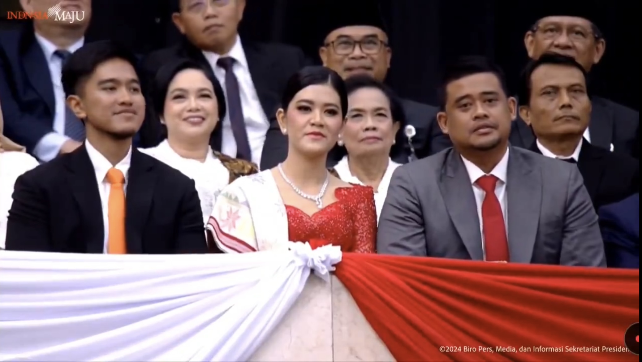 Namun, saat kamera tersebut diarahkan ke putra-putri Presiden Joko Widodo (Jokowi) yaitu Kaesang Pangarep dan Kahiyang Ayu didampingi sang suami Bobby Nasution, langsung terdengar suara sorakan para tamu undangan.