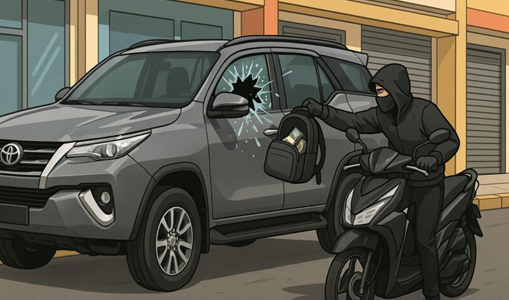 Ilustrasi perampokan dengan cara memecahkan kaca mobil