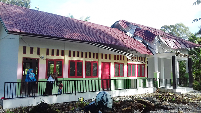 berada di depan banguna tumbang dan langsung menimpa bagian atap sekolah,”