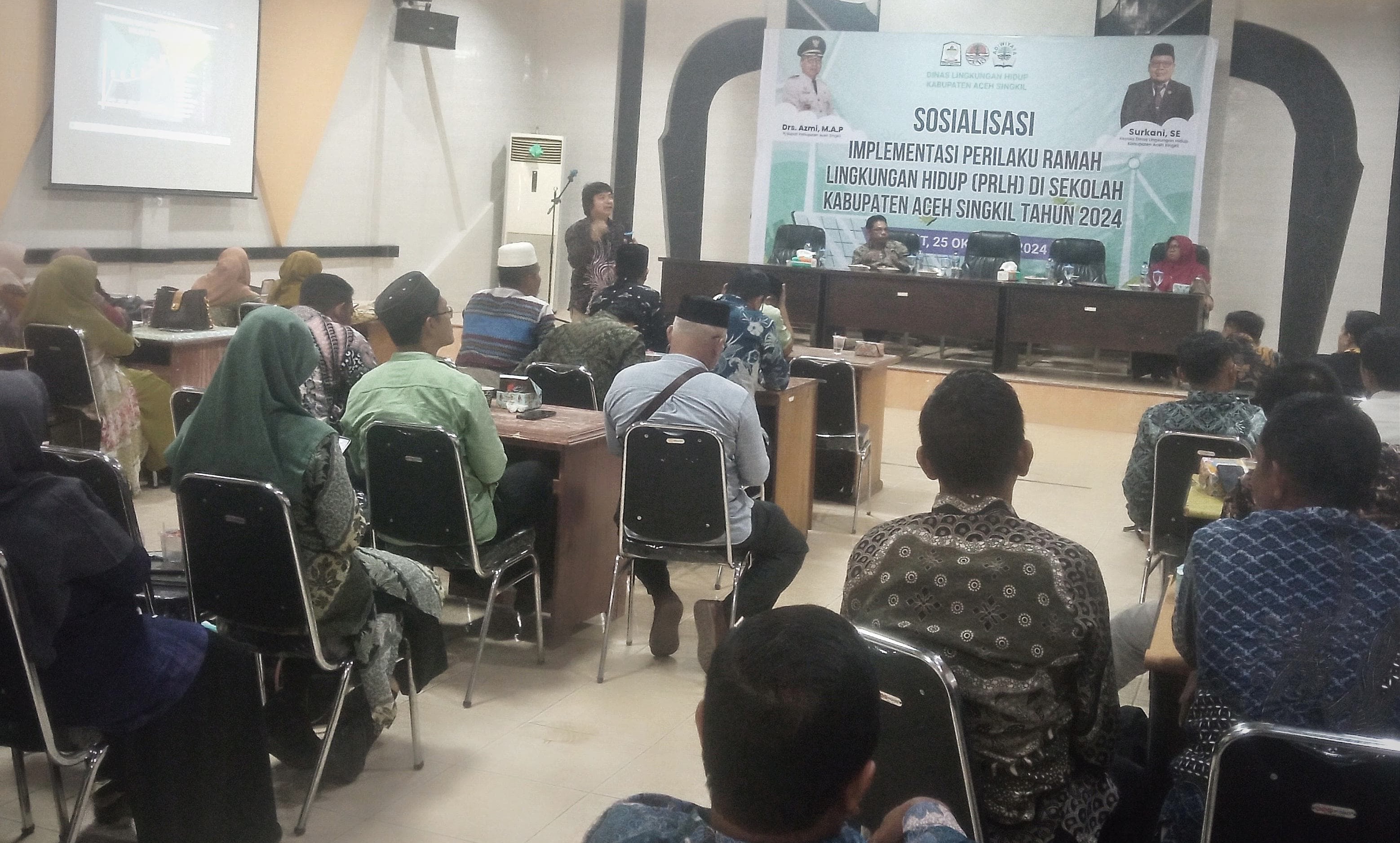 Singkil - Dinas Lingkungan Hidup (DLH) Aceh Singkil menggelar sosialisasi Perilaku Ramah Lingkungan Hidup (PRLH) yang melibatkan 53 sekolah dari berbagai jenjang pendidikan di Aula Bappeda Aceh Singkil, Jumat (25/10/2024)