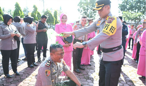 Penyiraman Air, Warnai Kenaikan Pangkat di Polres Aceh Timur