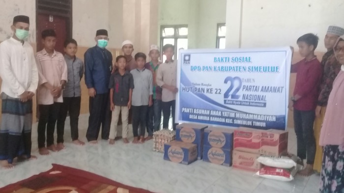 SEURAMOE/HELMANSEURAMOE SINABANG - Dewan Pimpinan Daerah Partai Amanat Nasional (DPD PAN) Kabupaten Simeulue melaksanakan baksos dalam rangka memperingati HUT PAN Ke-22 dan sekaligus Muswil ke V DPW PAN Provinsi Aceh di Panti Asuhan Putra Muhammadiyah Sinabang, di Desa Amiria Bahagia, Kecamatan Simeulue Timur, Jumat (21/08/2020).