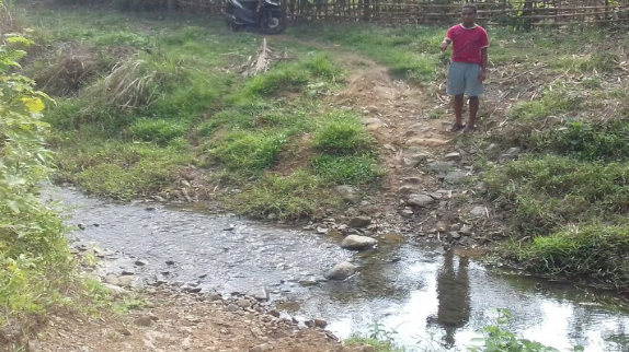 harus melewati lereng kebun warga lain serta menyeberangi muara sungai. Itu