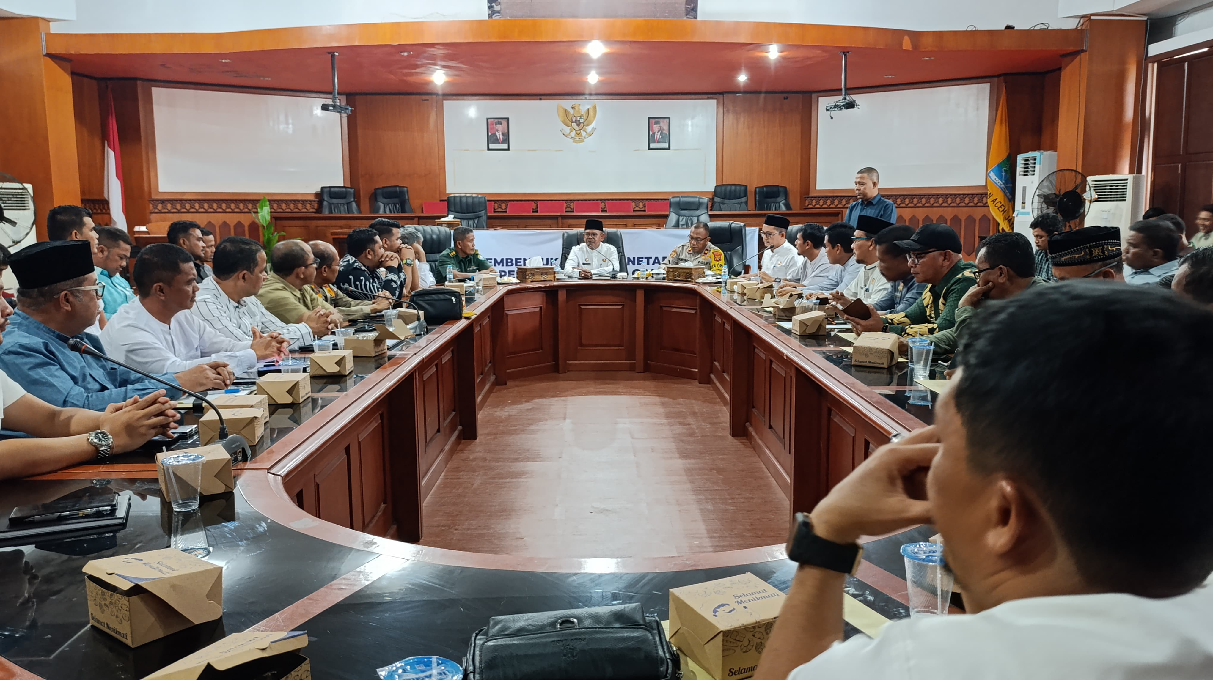 Pj. Bupati Aceh Jaya, Dr. A. Murtaka, M.Si., pimpin Rapat Koordinasi Kepala Daerah bersama Forkopimcam dan Penyelenggara Pemilukada Tahun 2024 di Aula Setdakab, Jumat (13/09/2024)