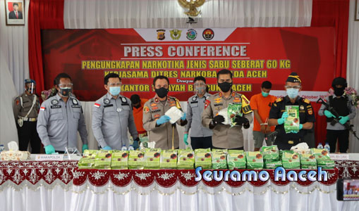 Dalam pengungkapan kasus tersebut, Ditresnarkoba Polda Aceh bekerja sama dengan Kanwil Bea Cukai Aceh berhasil mengamankan barang bukti berupa sabu seberat 60 Kg.