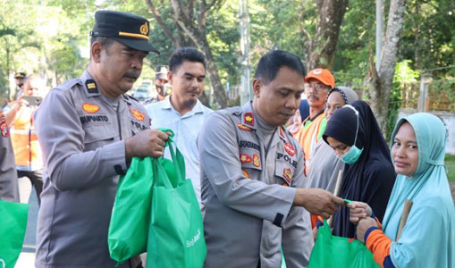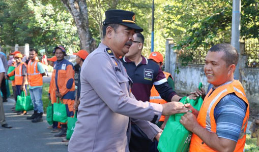 Polres Bagikan Bansos kepada Petugas Kebersihan