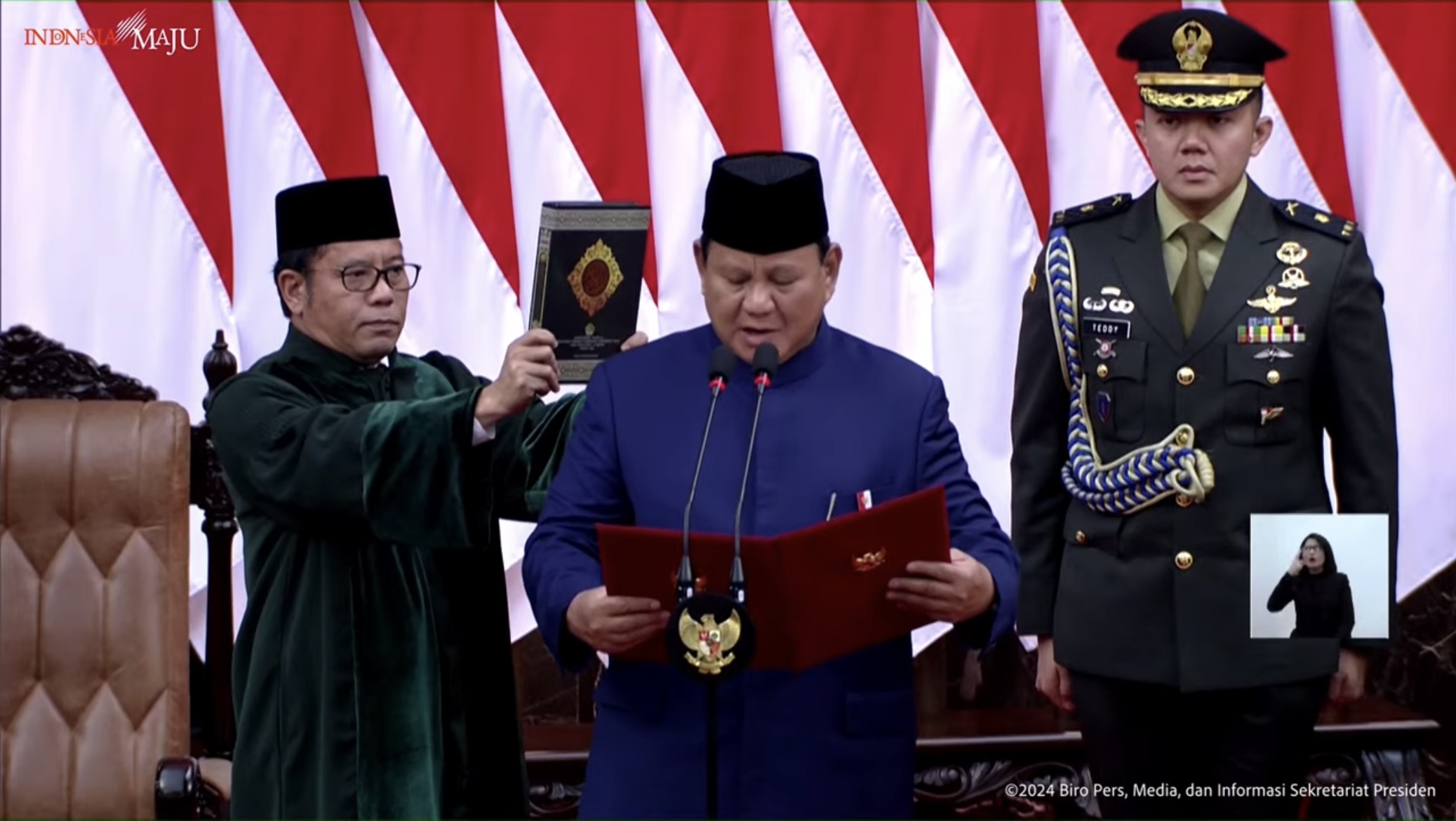 Jakarta - Prabowo Subianto dan Gibran Rakabuming Raka melakukan pengucapan sumpah jabatan Presiden dan Wakil Presiden Republik Indonesia masa Bakti 2024-2029.