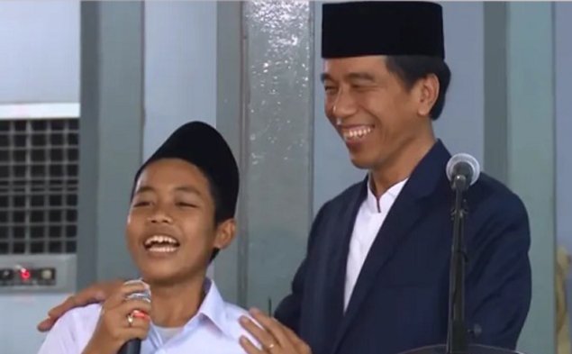 sebuah video yang beredar tahun 2016. Ketika itu Presiden meminta santri cilik