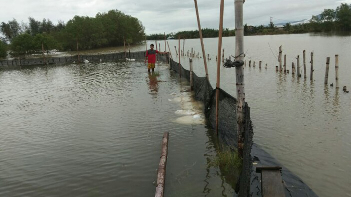 tersumbatnya muara Kuala Batu, sehingga air masuk ke sejumlah tambak milik