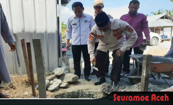 SEURAMOE MEULABOH - Bupati Aceh Barat H Ramli MS, Rabu (15/5/2019) melakukan peletakan batu pertama pembangunan gedung Balei Sumeubeut di Pesantren Hikmatuh Sunnah, Palu, Sulawesi Tengah.