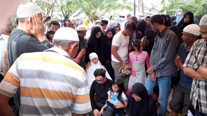 SEURAMOE SUKA MAKMUE - Ratusan pelayat tampak memadatai lokasi pemakaman Jamaluddin Hakim PN Medan yang ditemukan meninggal dunia di area perkebunan sawit di Sumatera Utara. Sabtu (30/11/2019)