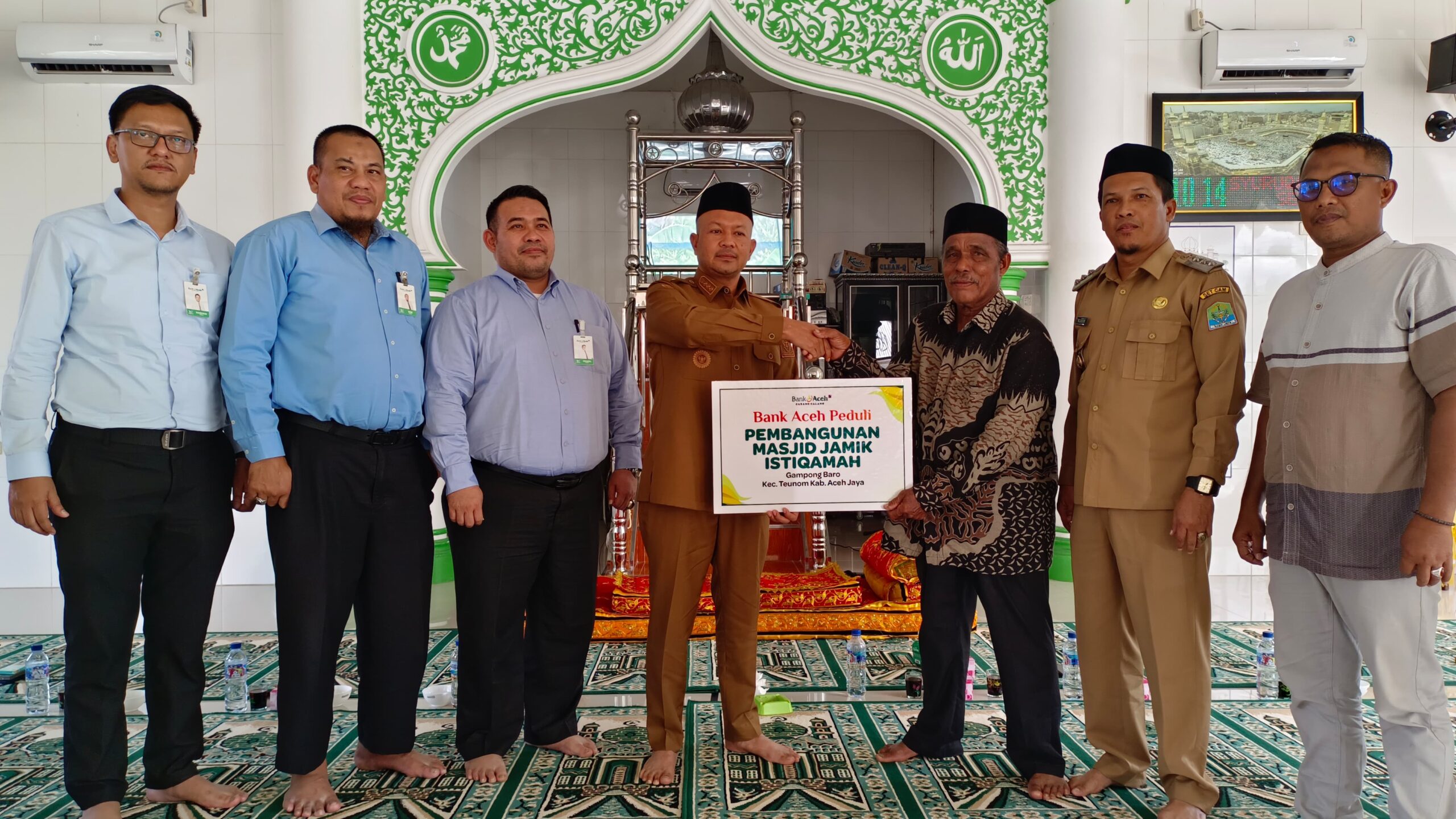 CALANG - Bupati Aceh Jaya, Safwandi, S.sos menyerahkan bantuan Dana CSR (Corporate Social Responsibility) Bank Aceh untuk Pembangunan Mesjid Jamik Istiqamah Gampong Baroe Kecamatan Teunom, Aceh Jaya pada Selasa (20/05/2025)